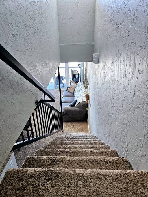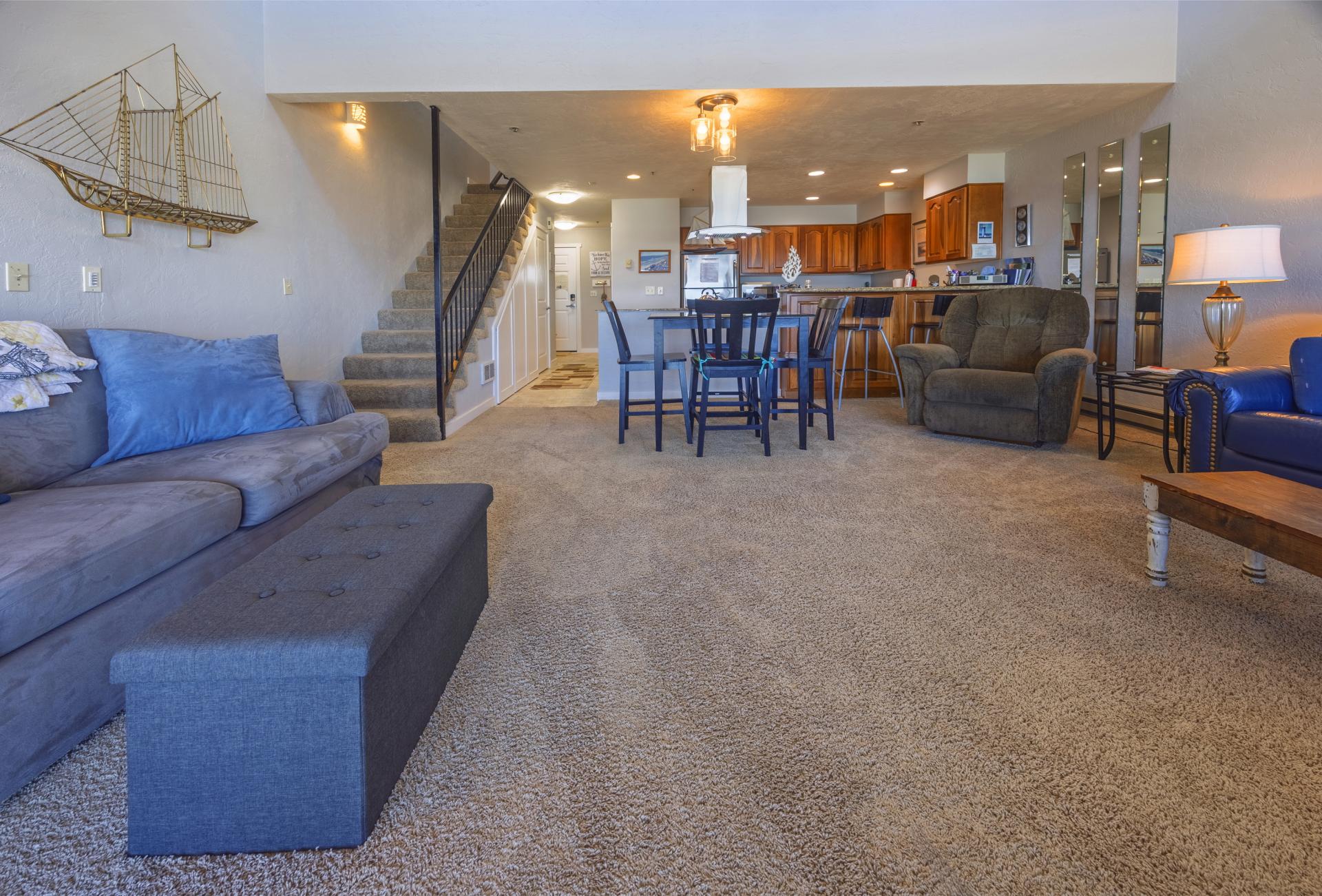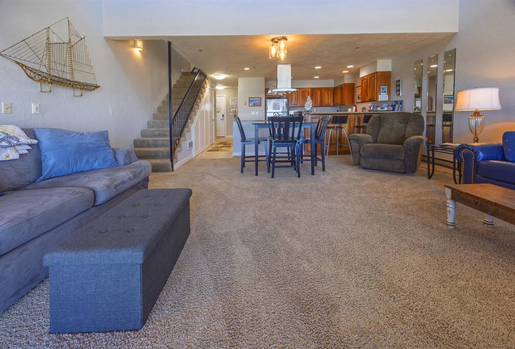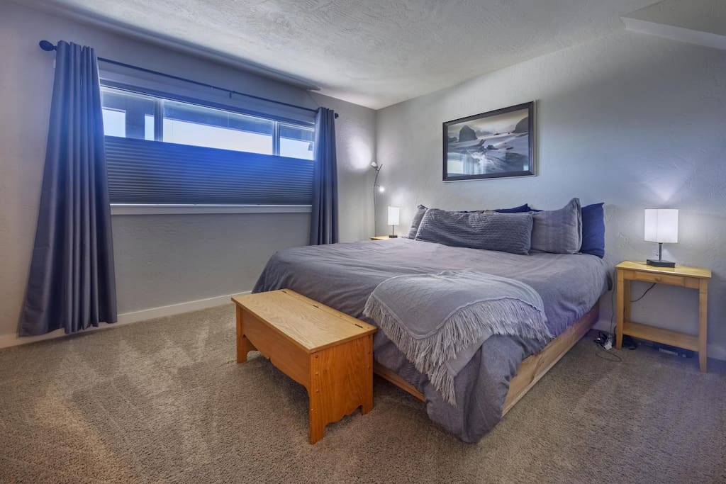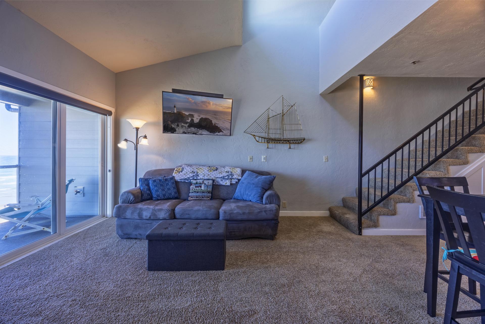 You’ll enjoy a newly remodel unit. Comfy living room with a TV with cable and DVD player, along with a CD player in the living room, are available for guest use. 2 couches, 2-barrel chairs, 1 recliner so you can enjoy the ocean view out the west. Dining area for 4 and a fully equipped open concept kitchen to make eating in a pleasure. Walk out your door to a beach access or stroll down the block to the Nye Beach District, a collection of unique shops and restaurants from a coffee house, bakery to upscale dining. Downstairs bedroom has TV with cable. Bring a good book, or there are plenty of DVD’s and board games for a cozy evening in or storm watching days. Each unit has it's own assigned parking spot, if you need additional parking you can park on the street.